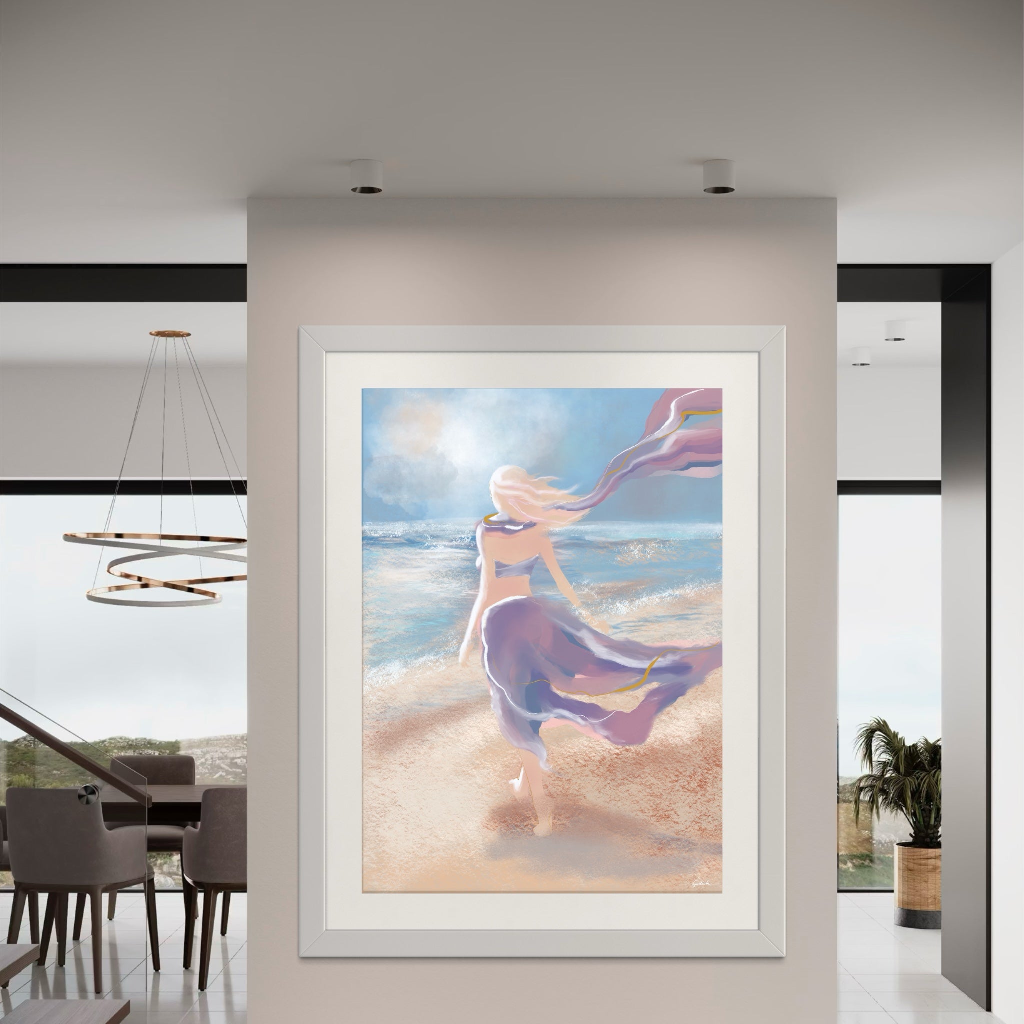 This artwork speaks to movement, openness, and the quiet beauty of beginnings. Perfect for luxury residences, boutique hotels, wellness retreats, and private collections, it is both timeless and cinematic — a reminder of the elegance found in life’s most expansive moments.