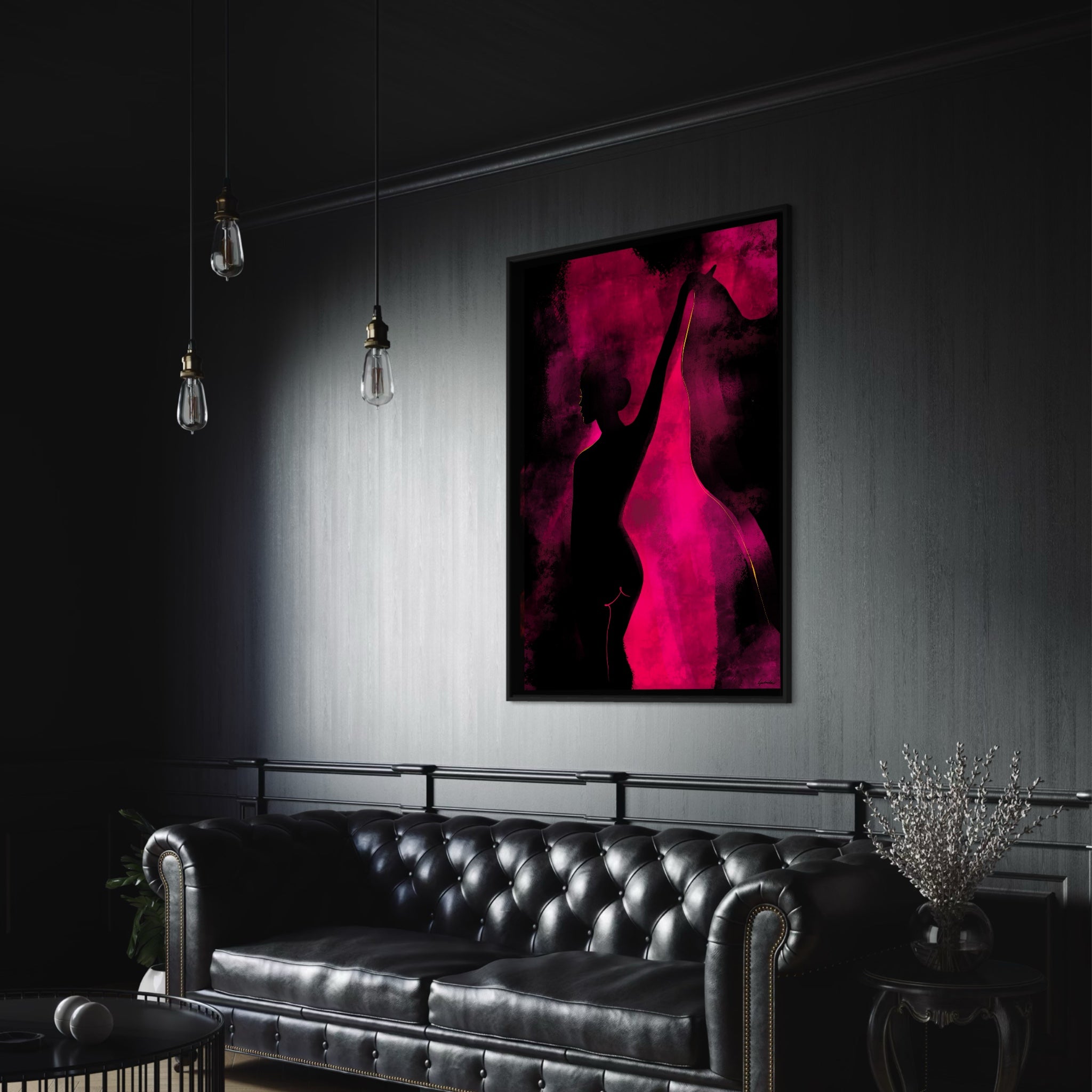 The textured background suggests velvet in motion, while the vivid pinks evoke energy, drama, and modern glamour. Bold yet refined, Velvet Shadow is designed for luxury hotels, fashion houses, curated interiors, and private collectors seeking art that speaks with presence.